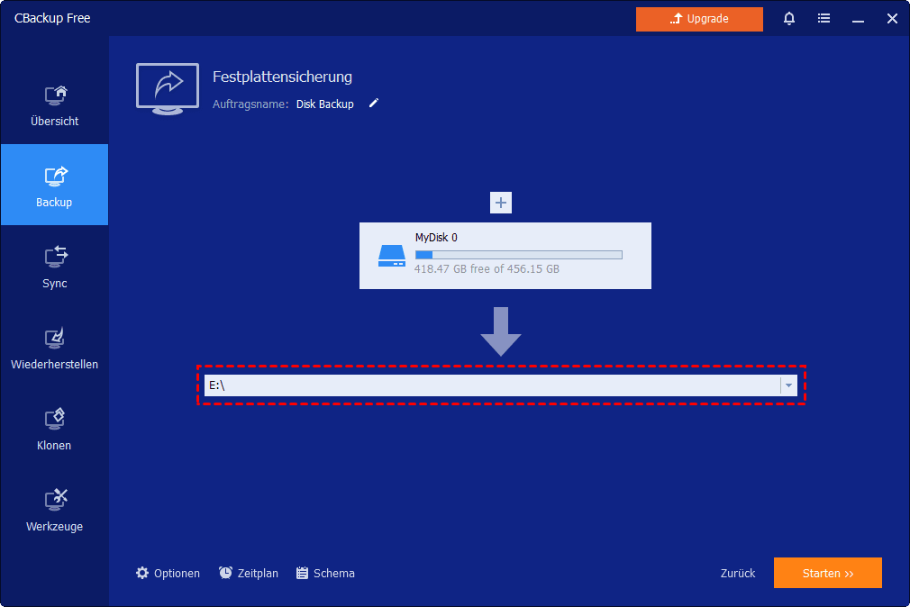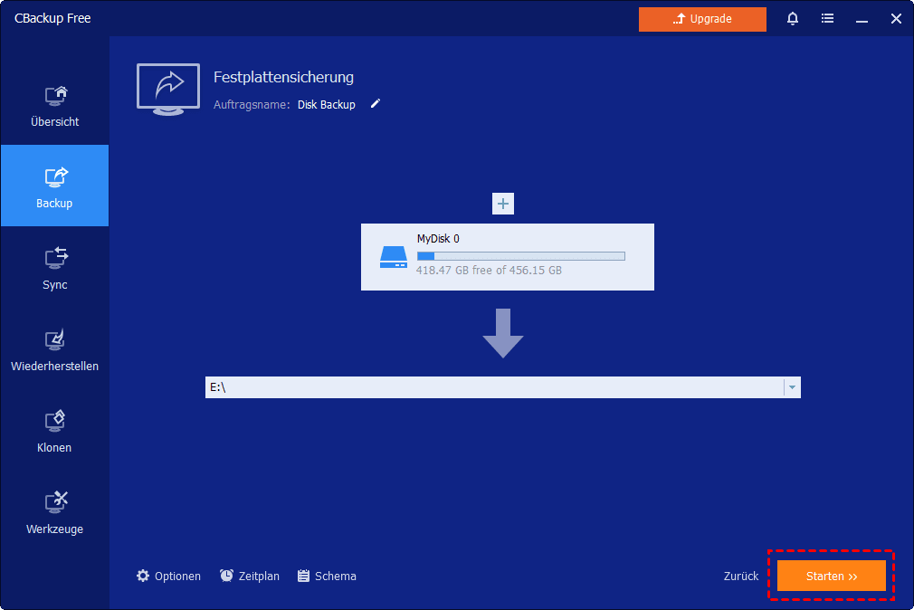 Klicken Sie auf „Starten“, um eine Festplattensicherung zu erstellen.