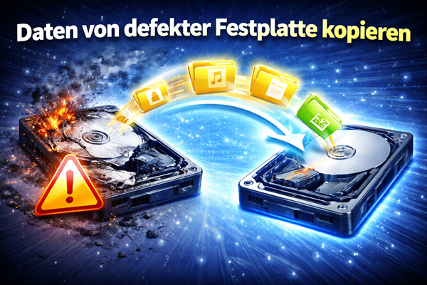 Ihre Festplatte macht Geräusche und Dateien lassen sich nicht öffnen? Erfahren Sie, wie Sie Daten von defekter Festplatte kopieren – einfach, schnell und ohne Datenverlust.