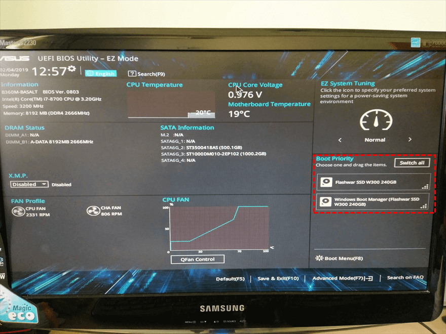 • Speichern Sie die Einstellungen (meist mit F10) und starten Sie neu.