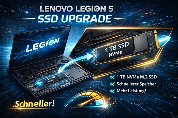 Ihr Lenovo Legion 5 lädt Spiele zu langsam? Mit einem SSD Upgrade holen Sie mehr Geschwindigkeit aus Ihrem Gaming-Notebook – ohne Neuinstallation.