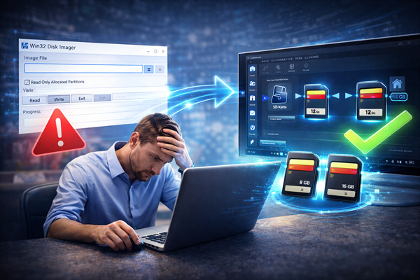 Wenn Sie mit Win32 Disk Imager eine SD-Karte klonen möchten, können verschiedene Fehlermeldungen den Prozess erschweren. In diesem Artikel lernen Sie die typischen Ursachen kennen und erhalten praktische Lösungen sowie eine einfache Methode, um Ihre SD-Karte ohne Komplikationen zu klonen.